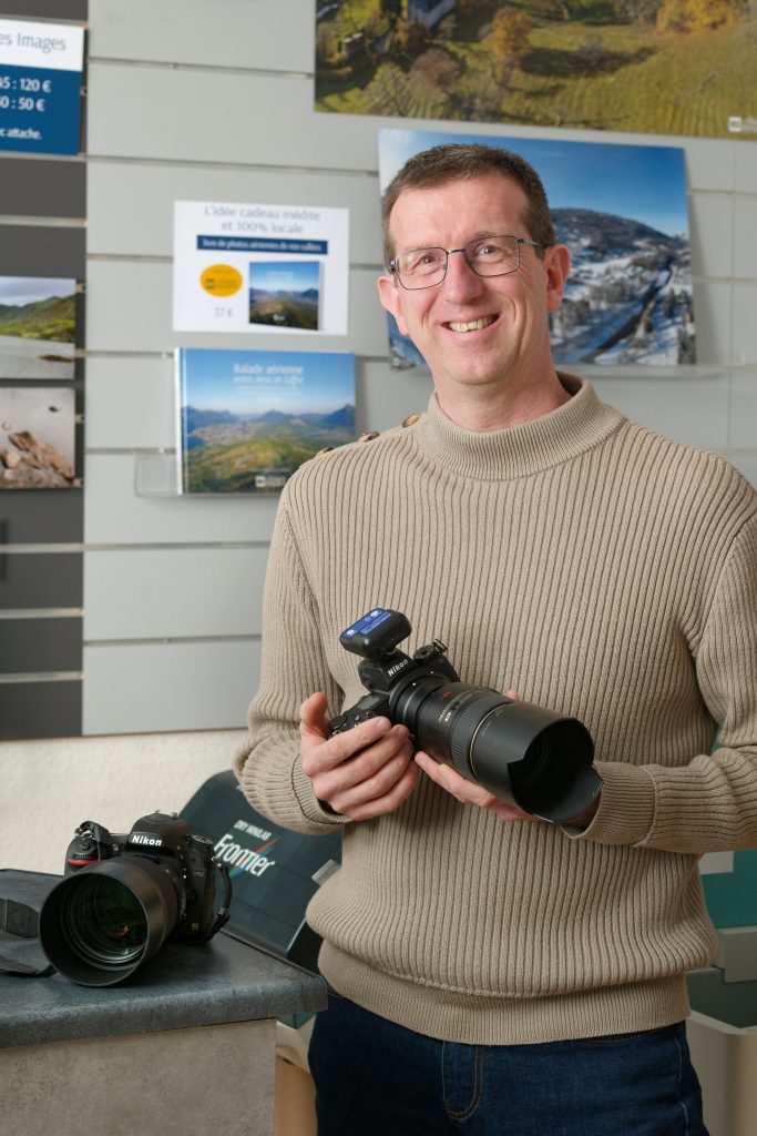 Il y a plusieurs pôles dans le magasin : il y a d’abord un espace boutique où l’on peut vendre des cadres, des tirages et des albums. Un espace studio où l’on fait de la photographie de portrait et aussi de la photo publicitaire. Je réalise par ailleurs des prises de vues extérieures, au sol ou en drone. Je réalise également de la vue de reportage d’illustrations, par exemple pour l’office de tourisme et aussi de la vue industrielle.