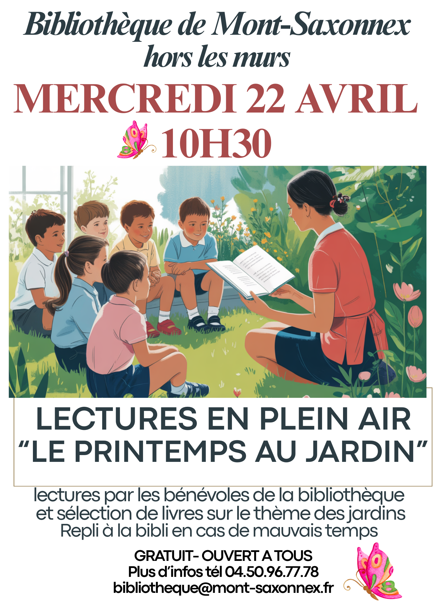 lectures hors les murs sur le thème du printemps au jardin